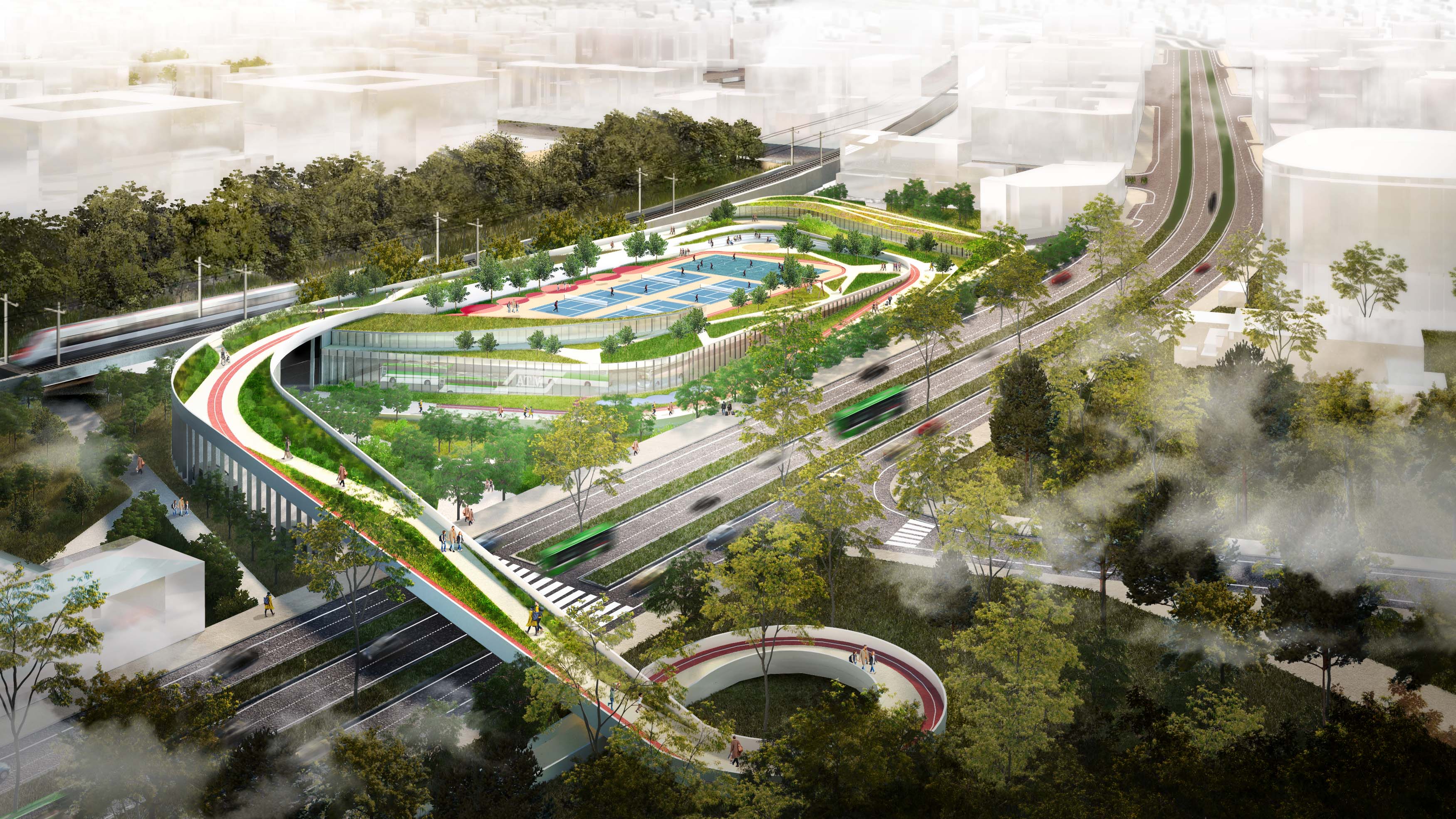 The project proposes a depot of 20.000sqm for electric vehicles, which is mainly developed underground. On the roof of the building, there will be a large sloped green space that will connect the park of Memorie industriali with the Ravizza park, creating a green area with sport facilities and playgrounds. The project aims to offer a unique experience to the citizens, a place where people can play, have fun and relax.