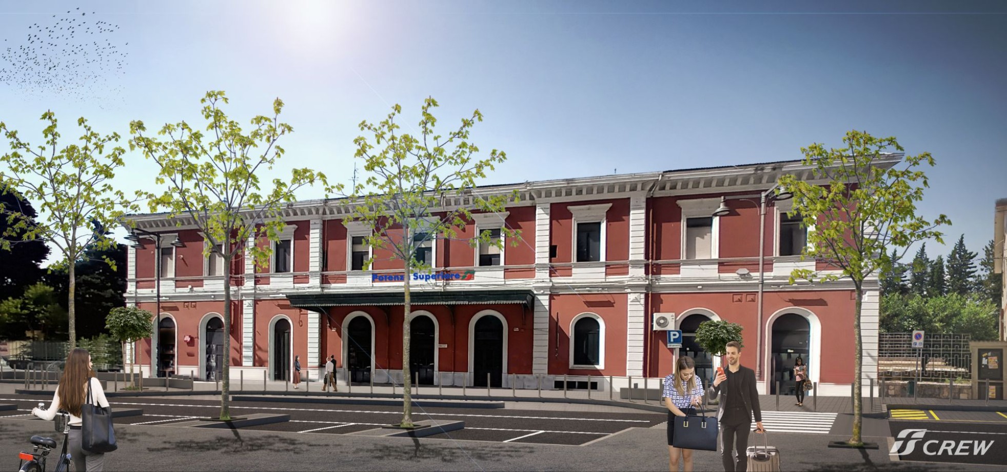 La piazza esterna sarà trasformata in un luogo di connessione tra i passeggeri e la città, ridisegnando l’accesso con aree pedonali più ampie e percorsi ordinati per le diverse modalità di trasporto, dai veicoli privati ai mezzi pubblici e alle biciclette, riflettendo una rinnovata vocazione intermodale. Gli stalli per biciclette e auto si coniugano con spazi di attesa coperti e percorsi sicuri che invitano i cittadini a vivere la stazione non solo come un luogo di passaggio, ma come un’estensione dello spazio pubblico. All'interno, il Fabbricato Viaggiatori sarà oggetto di un restauro integrato per restituire valore agli elementi architettonici storici, ridisegnando gli spazi per offrire nuovi servizi e migliorare la funzionalità dell’area. Gli interventi puntano a eliminare le barriere architettoniche, facendo della stazione un luogo accessibile a tutti, in cui l’ampiezza degli spazi e la chiarezza del percorso consentono ai passeggeri di orientarsi in modo intuitivo.