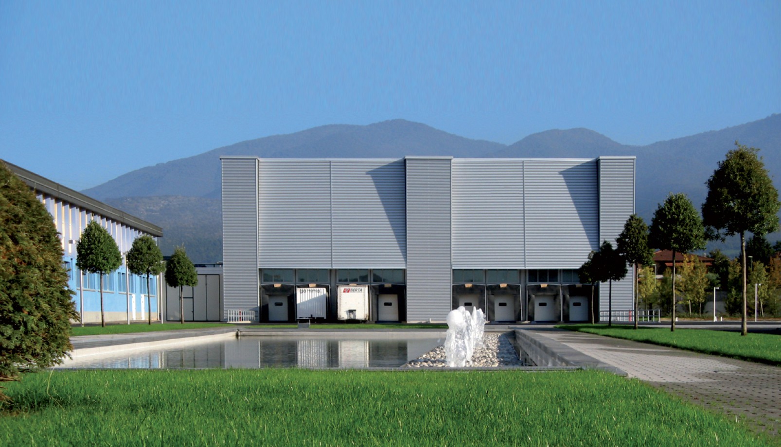 Il progetto prevede la costruzione di un nuovo magazzino automatizzato per Palazzoli S.p.A., un'azienda che produce componenti e sistemi per l'ingegneria elettrica. Il nuovo edificio è un ampliamento di 5.000 mq situato accanto a quello esistente. L'edificio ha un contenuto tecnologico rilevante grazie alla presenza di un sistema automatico per lo stoccaggio e la movimentazione delle merci. Il progetto prevede anche la progettazione di tutte le aree esterne, caratterizzate da una vasca d'acqua che non è solo un elemento estetico, ma anche una riserva d'acqua per i vigili del fuoco.